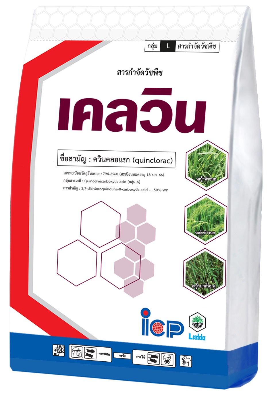 เคลวิน สารควินคลอแรก 50% WP ขนาด 250 กรัม ใช้หลังวัชพืชงอกในข้าวนาหว่านน้ำตม เพื่อกำจัดวัชพืชประเภทใบแคบ เช่น หญ้าข้าวนก และหญ้านกสีชมพู